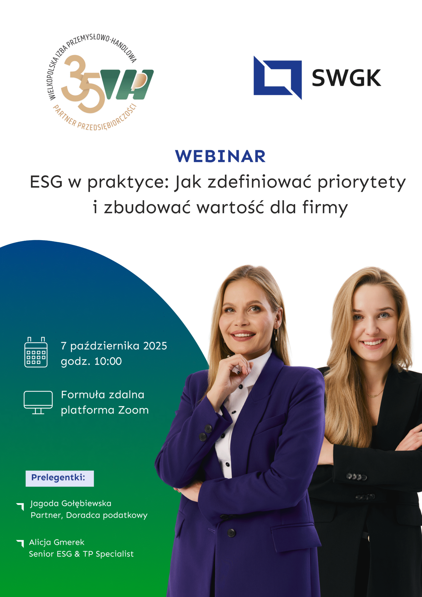 7.10.2025 r. g.10.00 Webinar „ESG w praktyce: Jak zdefiniować priorytety i zbudować wartość dla firmy”