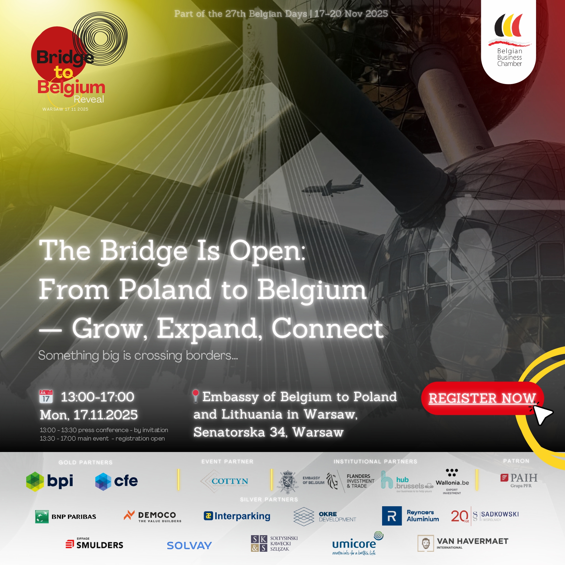 Wydarzenie Bridge to Belgium Reveal oficjalnie otworzy tegoroczną edycję Belgian Days 2025, stanowiąc jednocześnie ważny moment w historii Belgian Business Chamber. Projekt został zaprojektowany jako strategiczna platforma dla polskich firm, które planują eksport lub inwestycje w Belgii. To wydarzenie o wysokim potencjale biznesowym, oferujące praktyczną wiedzę i realne możliwości nawiązywania kontaktów z partnerami belgijskimi. Uczestnicy […]