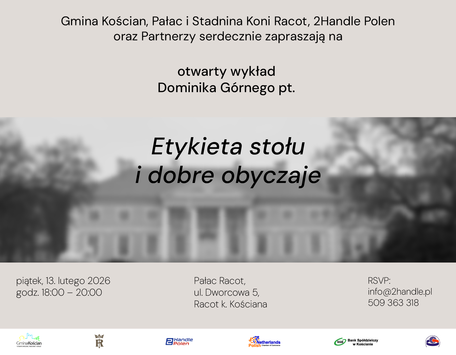 Gmina Kościan, Pałac i Stadnina Koni Racot, 2Handle Polen oraz Partnerzy serdecznie zapraszają na otwarty wykład Dominika Górnego