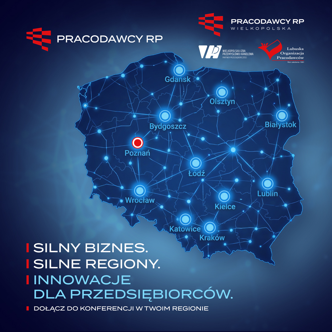 Konferencja z cyklu „Silny biznes. Silne regiony. Innowacje dla przedsiębiorców” odbędzie się już 26 maja w Poznaniu w hotelu Mercure. W imieniu Pracodawców RP, Pracodawców RP – Wielkopolska oraz Wielkopolskiej Izby Przemysłowo-Handlowej serdecznie zapraszamy na wyjątkowe spotkanie dedykowane przedsiębiorcom z naszego regionu.