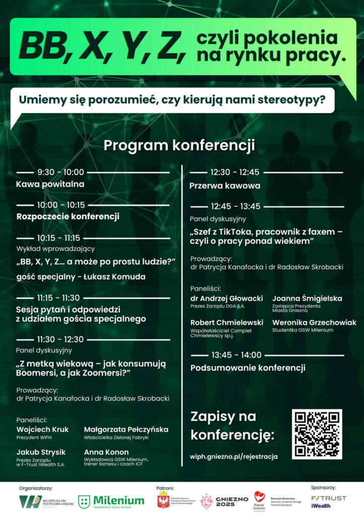 Konferencja rozpocznie się o godzinie 10:00. Gościem specjalnym będzie Łukasz Komuda, analityk rynku pracy, ekonomista i ekspert Fundacji Inicjatyw Społeczno-Ekonomicznych (FISE). Wygłosi on wykład wprowadzający pt. „BB, X, Y, Z… a może po prostu ludzie?” , po którym odbędzie się sesja pytań i odpowiedzi.