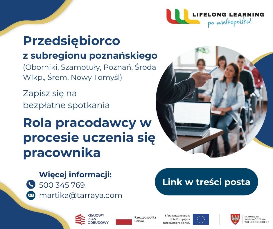 Wojewódzki Urząd Pracy w Poznaniu we współpracy z Tarraya S.A. zaprasza na cykl spotkań poświęconych roli pracodawcy w rozwoju kompetencji pracowników.